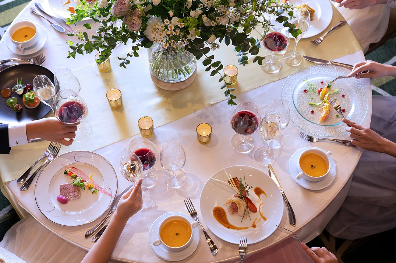 “心からのおもてなし”をコンセプトに妥協を一切せず、厳選素材を使用してソースの一滴まで手作りするこだわりの逸品。お料理コースは1品ずつの単品を組み合わせるプリフィックス、シェフのお勧めの組み合わせから成るオススメコース、おふたりのご要望に応じたフルオーダーまで幅広く対応可能。