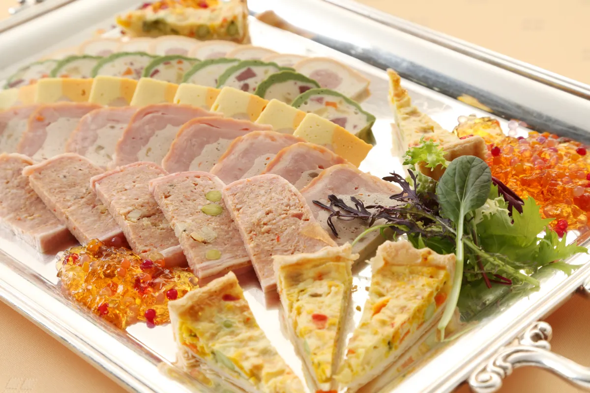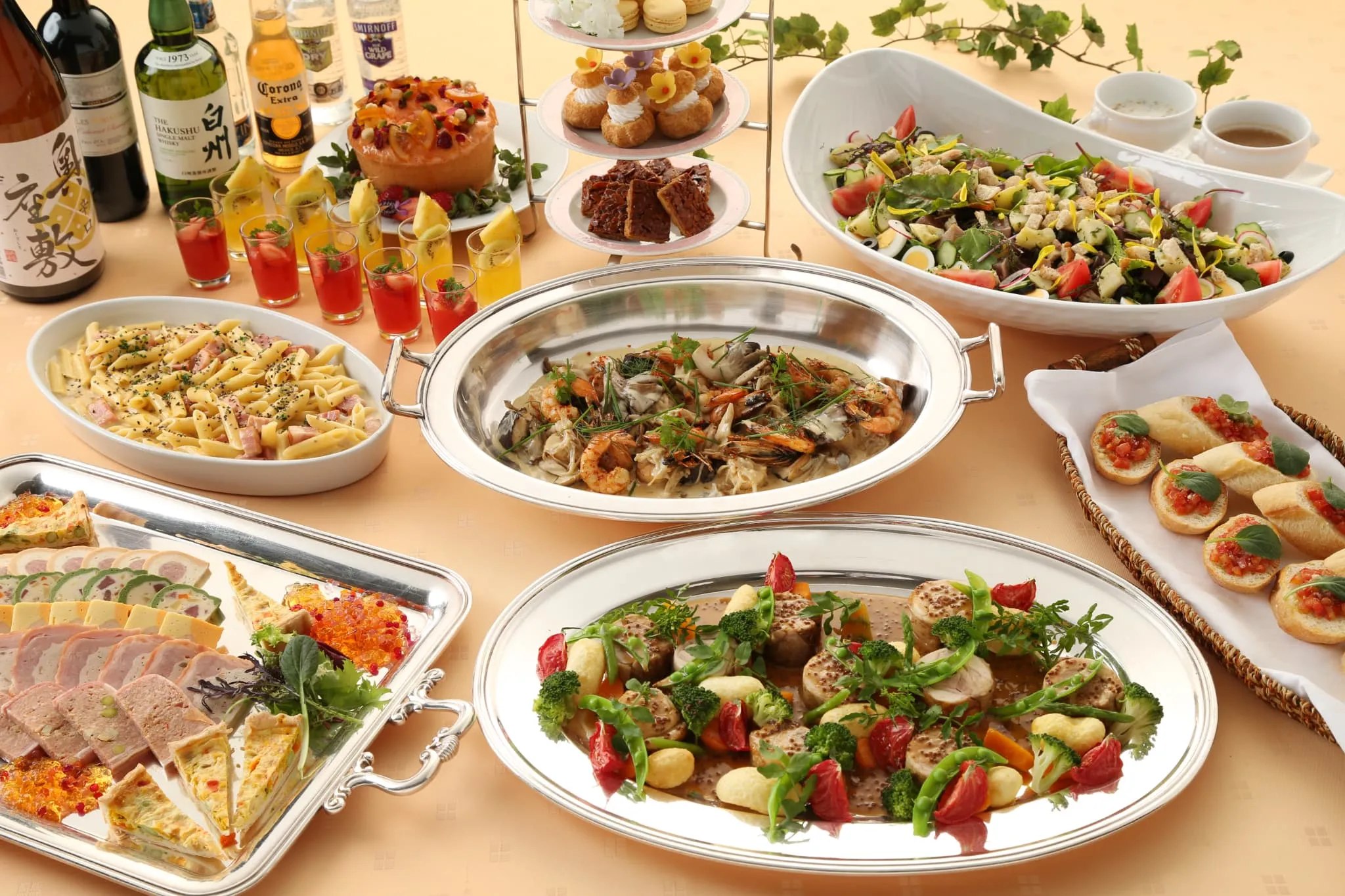 ・冷製オードブル5品、温製オードブル5品、各種デザート